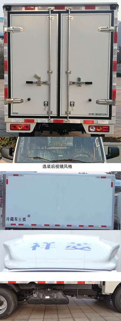 福田祥菱M1國六冷藏車采用福田公司冷藏車底盤,115馬力汽油發動機,2750軸距,單排駕駛室,175R14后雙胎,五檔變速箱,原廠空調,動力轉向,后雙開門,車廂內部尺寸:3120×1580×1560(mm)。整車尺寸:5070×1740×2490(mm)。