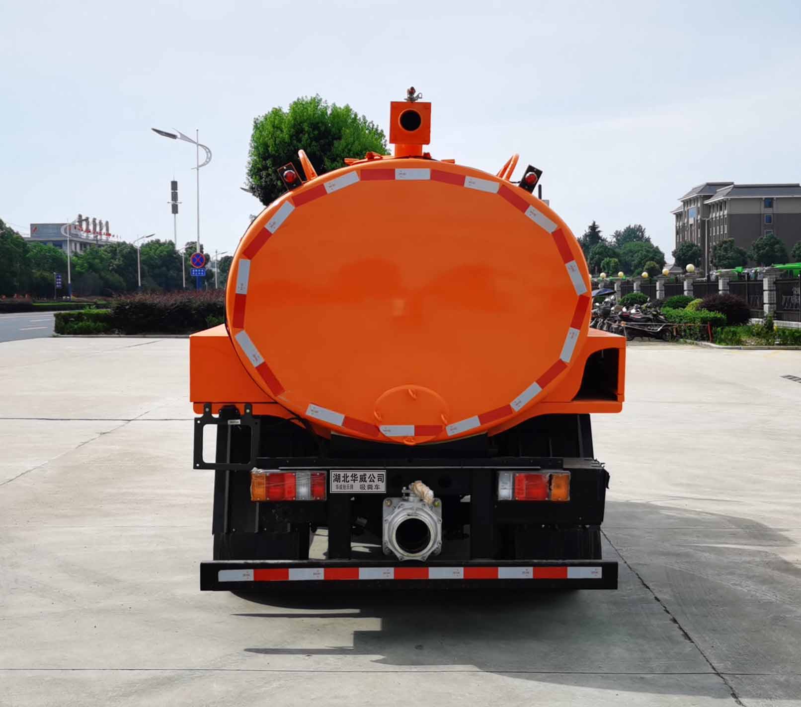 運輸介質為液態污物,密度:800千克/立方米,罐體外形尺寸(罐體長*長軸*短軸)(mm):3000*1600*1250.罐體有效容積為:4立方米.車輛左右側防護材質為Q235,側防護采用螺栓連接;車輛后下部防護材質為Q235,后防護采用螺栓連接.后下部防護斷面尺寸為:120mm×50mm,離地高度為:350mm.ABS及其控制器型號/生產企業對應關系為:APG3550500A/浙江亞太機電股份有限公司,CM4YL/廣州瑞立科密汽車電子股份有限公司.車輛安裝真空泵、罐體等裝置改裝而成,主要用于城市的糞便、污液的收集和清理. |