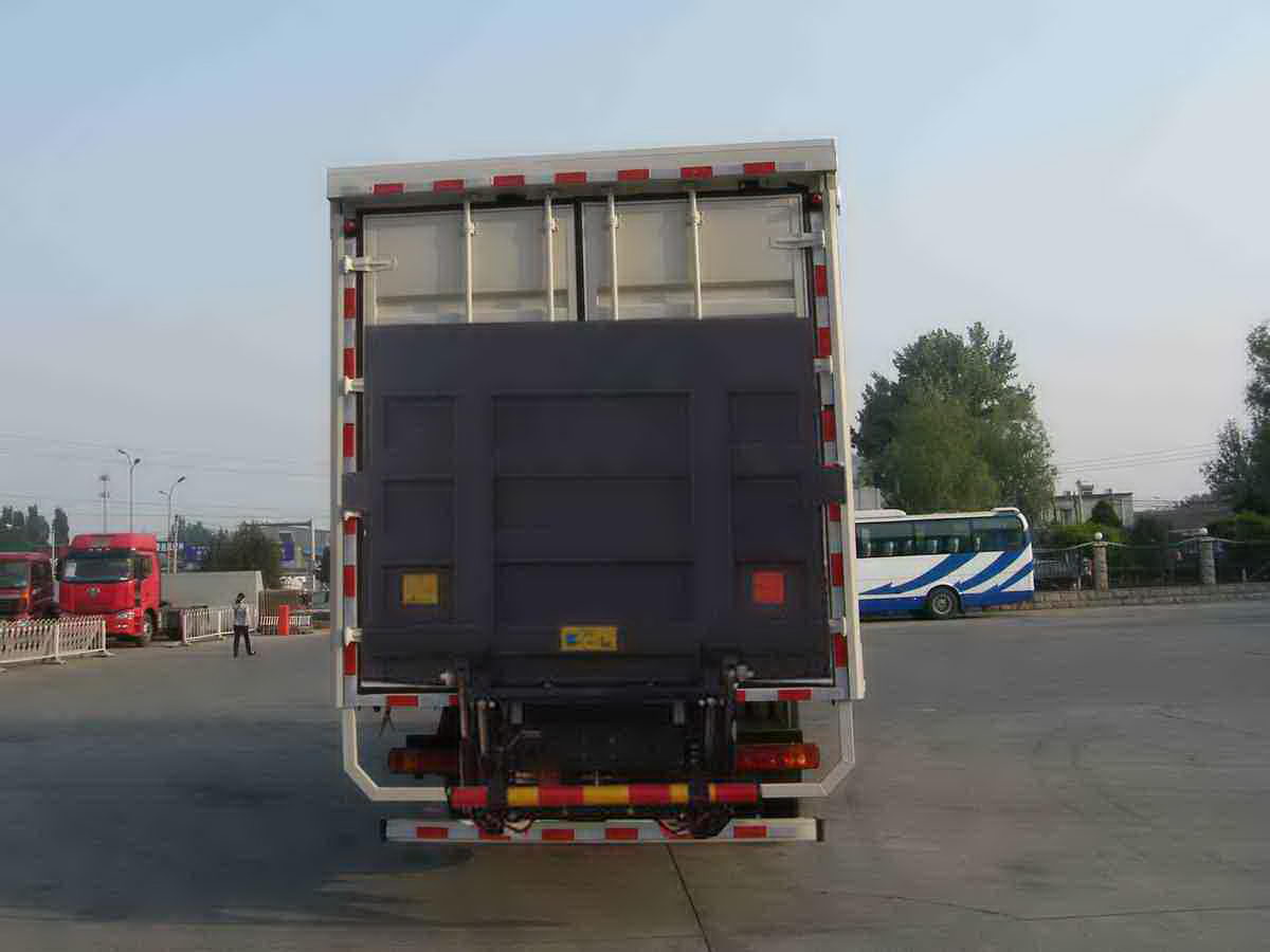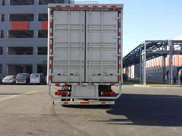 選裝導流罩.車廂頂部封閉不可開啟.選裝液壓尾板.側防護裝置材料:Q235;后防護裝置材料:510L;后防護裝置斷面尺寸:100×50mm,后防護離地高度:500mm;側防護裝置連接方式:焊接,后防護裝置連接方式:螺栓連接.ABS系統型號:ABS/ASR-24V-4S/4M;生產企業:東風電子科技股份有限公司.安裝具有衛星定位功能的行駛記錄儀. |