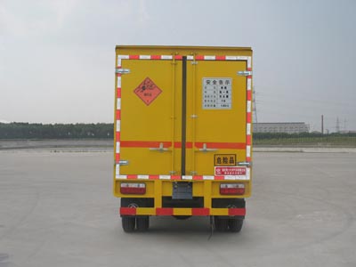 廂體頂部封閉,不可開啟:側(cè)/后防護裝置材料材質(zhì)為Q235A碳鋼,側(cè)防護與副梁,后防護裝置與車架均采用焊接連接,后防護斷面尺寸(寬×高)50×120(mm),離地高度為450mm.運輸品名:炸藥,雷管,煙花爆竹等,類項號:1.1B,1.1D,1.1G,1.2G,1.3G,1.4G 等;安裝帶衛(wèi)星定位功能的行駛記錄儀;配裝限速裝置,最高時速80km/h。僅采用有前盤制動器和安裝ABS的底盤。僅采用子午線輪胎(輪胎型號:7.00R16 8PR,6.50R16 10PR輪胎)。ABS生產(chǎn)廠家:東風電子科技股份有限公司制動系統(tǒng)公司;型號:36JD01-30010。僅采用排氣管前置的底盤。僅采用發(fā)動機型號4B28BTCI,SD4BW754U,YN33CRD2,CY4102-CE4F,YC4FA90-40,D28D10-4DA,4F20ATCI,CY4T75-CE4,4DW93-84E4,YN27CRD1,4DW93-95E4,對應(yīng)油耗值分別為12.9;12.5;12.9;12.9;12.7;12.7;11.8;12.7;12.8;12.8;12.2。隨底盤選裝駕駛室。 |