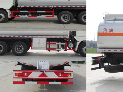 | 陜汽德龍后雙橋運油車采用陜汽本部暢銷產品:陜汽德龍油車專用底盤(二類國四排放底盤):前盤制動,ABS,行使記錄儀,限速器,排氣管前置。