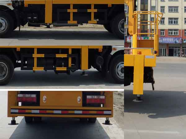 高空作業車是指運送工作人員和使用器材到現場并進行空中作業的專用車輛。東風多利卡曲臂式國五高空作業車采用雙排座或排半東風汽車公司國五二類底盤,朝柴115KW發動機或玉柴130馬力或康明斯156馬力,7.50-16 14PR輪胎,前伸1100mm,后伸150mm,,舉升高度14-16米。帶液壓或手動支腿4個。未經培訓合格并獲得操作、駕駛資格證書的人員嚴禁操作高空作業車。 東風多利卡曲臂式國五高空作業車能懸伸作業、跨越一定的障礙或在一處升降可進行多點作業;平臺載重量大,可供兩人或多人同時作業并可搭載一定的設備;移動平臺移動性好,還可360度旋轉,轉移場地方便;外型美觀,適于室內外作業和存放。適用于車站、碼頭、商場、體育廠館、小區物業、廠礦車間等大范圍高空作業。東風多利卡曲臂式國五高空作業車具體參數及圖片見下表:
