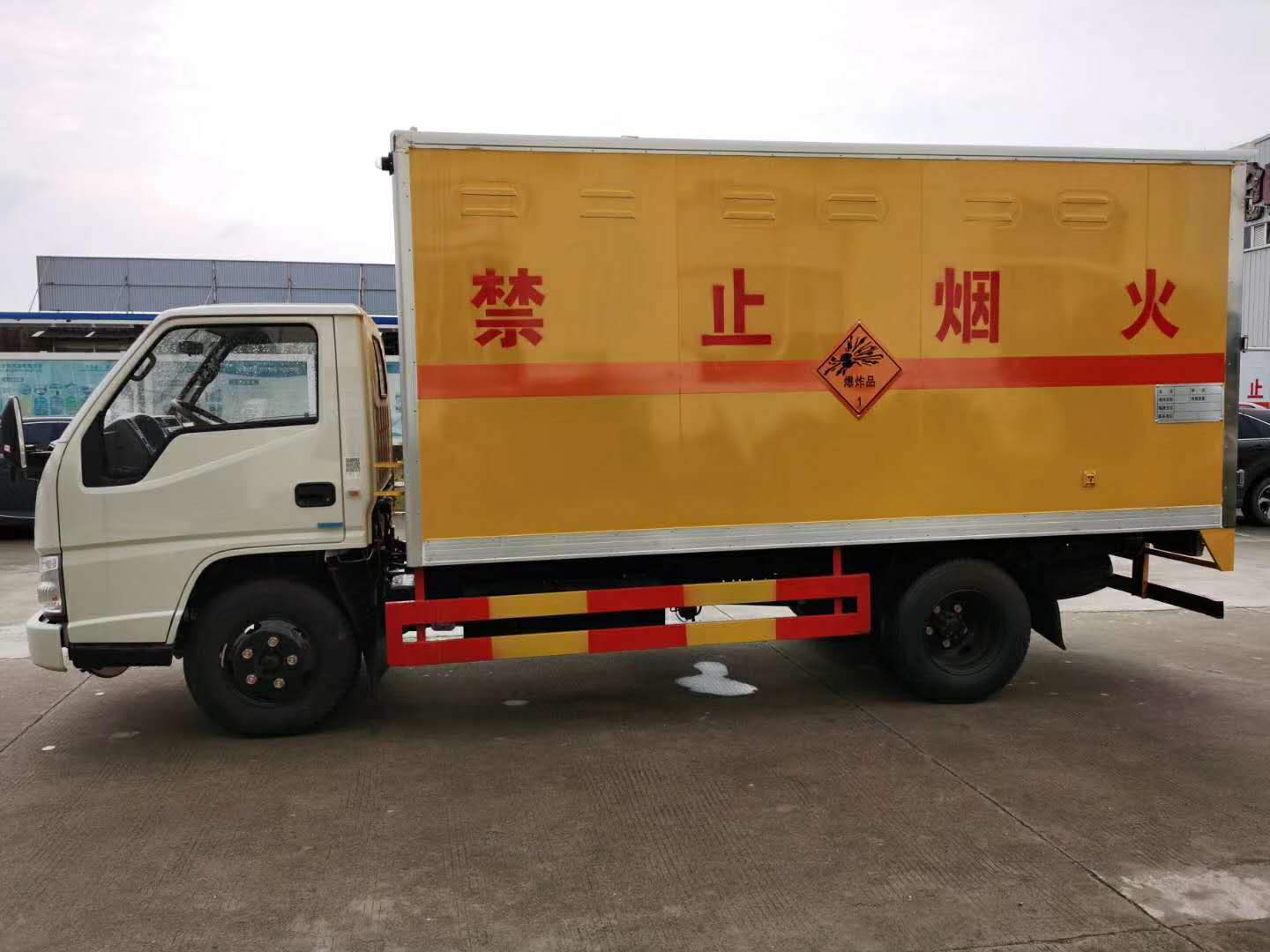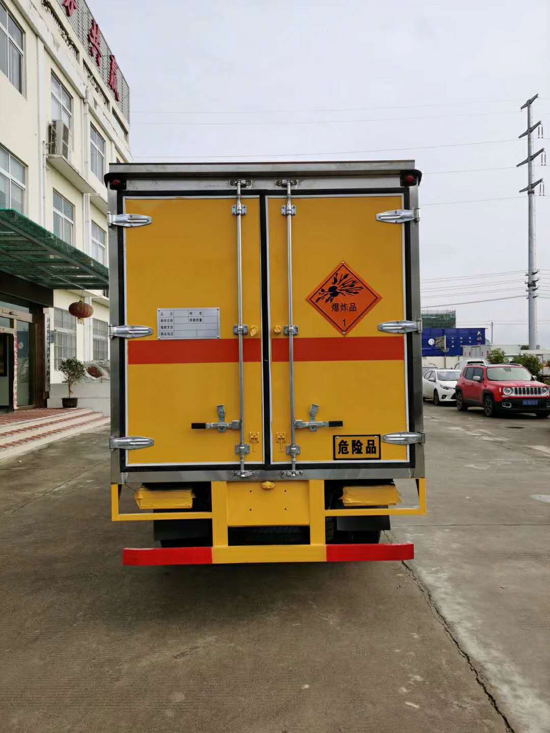 江鈴順達藍牌爆破器材運輸車/防爆車/民爆車是危險品運輸車的一種,江鈴115馬力發動機,五檔變速箱,3360軸距,7.00鋼絲胎,帶方向助力,N600單排駕駛室,ABS,限速80,前盤制動,排氣管前置等。有燃油和環保公告,上戶無憂。江鈴順達此款底盤還能裝易燃氣體廂式運輸車,煙花爆竹專用運輸車,雜項危險物品廂式運輸車和易燃液體廂式運輸車,整車不超重。 江鈴順達藍牌爆破器材運輸車/防爆車/民爆車廂體外飾外板采用1mm厚冷軋板有一次成型的百葉窗,內飾為導電性能良好的鋁板含透氣孔,內襯為矩形管骨架牢靠穩定,內部填充為透氣防潮阻燃的擠塑板,底板和車廂前下部鋪橡膠皮,廂體外部上下鋁合金型材包邊,后門雙開,右側選裝側開門,內部有固定貨物的臥環,外部有靜電帶,滅火器,防火罩,廂內安裝煙霧警報器和門防盜報警器.