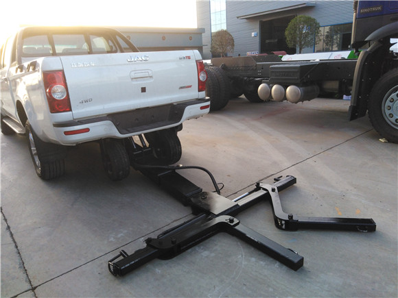 江西五十鈴國六瑞邁S地庫清障車改裝配置:貨箱結構不變,在貨箱底部加裝3噸液壓托臂,加裝1套液壓升降輔助輪,四聯動力單元,油路多路閥,兩縱樑用鋼板加強,后橋加/換4塊鋼板,有線及無線 揺控兩種操作方式,選裝自動抱胎和手動抱胎結構,托臂最大有效長度1550mm,托臂最大托舉質量約2—3噸,綁帶2條,工具箱1個,標配輔助小車2個(有定向或萬向輪可選),還可選購拖四驅車的專用A型輪。
