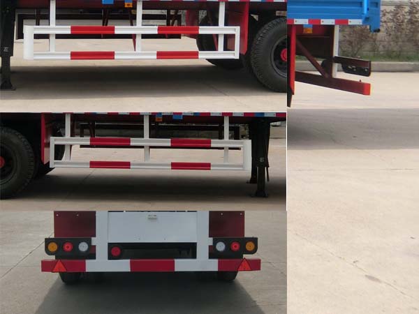 側防護采用Q235,螺栓連接;后防護采用Q235,焊接連接;后防護截面高度尺寸120mm,截面寬度尺寸50mm,下邊緣離地高度480mm;ABS系統控制器型號:CM2XL-2S/2M;ABS系統控制器生產廠家:廣州市科密汽車制動技術開發有限公司.