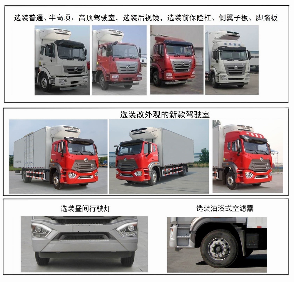 重汽豪翰輕奢版6.8米冷藏車選裝配置:箱體內(nèi)外材料:玻璃鋼,鋁合金,不銹鋼;用戶;溫度記錄儀:隨車打印,高低溫報(bào)警,GPS定位;選裝側(cè)開門:單側(cè)門,雙側(cè)門;制冷機(jī)組根據(jù)用戶要求選裝15度至-5度國產(chǎn)機(jī)組或進(jìn)口機(jī)組。