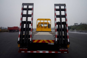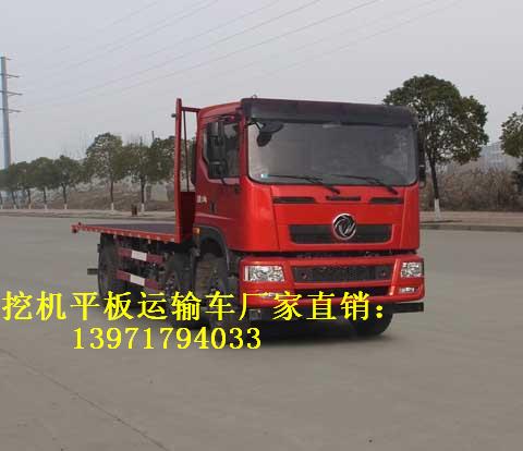 東風本部小三軸國五平板運輸車用于裝載運輸工合機械、挖機、鏟車、收割等工合機械運輸,車后部帶后爬梯,帶支腿(液壓或手動),底板為5mm花紋鋼板,方鋼承載筋,貨臺承載面尺寸長6180mm, 寬2500mm,承載面可選裝手動或液壓水平支出.平板離地高度:1050mm。爬梯長度1800-2000mm,傾角30-45度.