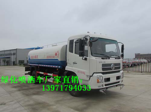 如:東風天錦12方國五綠化噴灑車采用東風公司本部環衛車專用二類底盤。配備灑水車、綠化噴灑車大功率專用灑水泵(威龍泵),帶消防接頭,帶自流閥,帶自吸功能,罐體材料采用優質碳鋼板,前沖后灑、側噴;高位側花灑(10方以上標配);后帶工作平臺,綠化灑水高炮,公告有效容積11.7方(按公告罐體尺寸做--實際容積要大)。