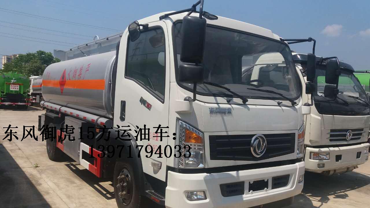 東風御虎15方國五單橋運油車客戶選裝配置:優質鋁合金球閥(閥門) ;可分倉(附加一套歐標罐口及海底閥) ;泵進/泵出流量表(合肥流量表/重慶流量表),罐體內部襯塑或罐體內部防腐油漆,選裝加油機倉內或外裝大梁。