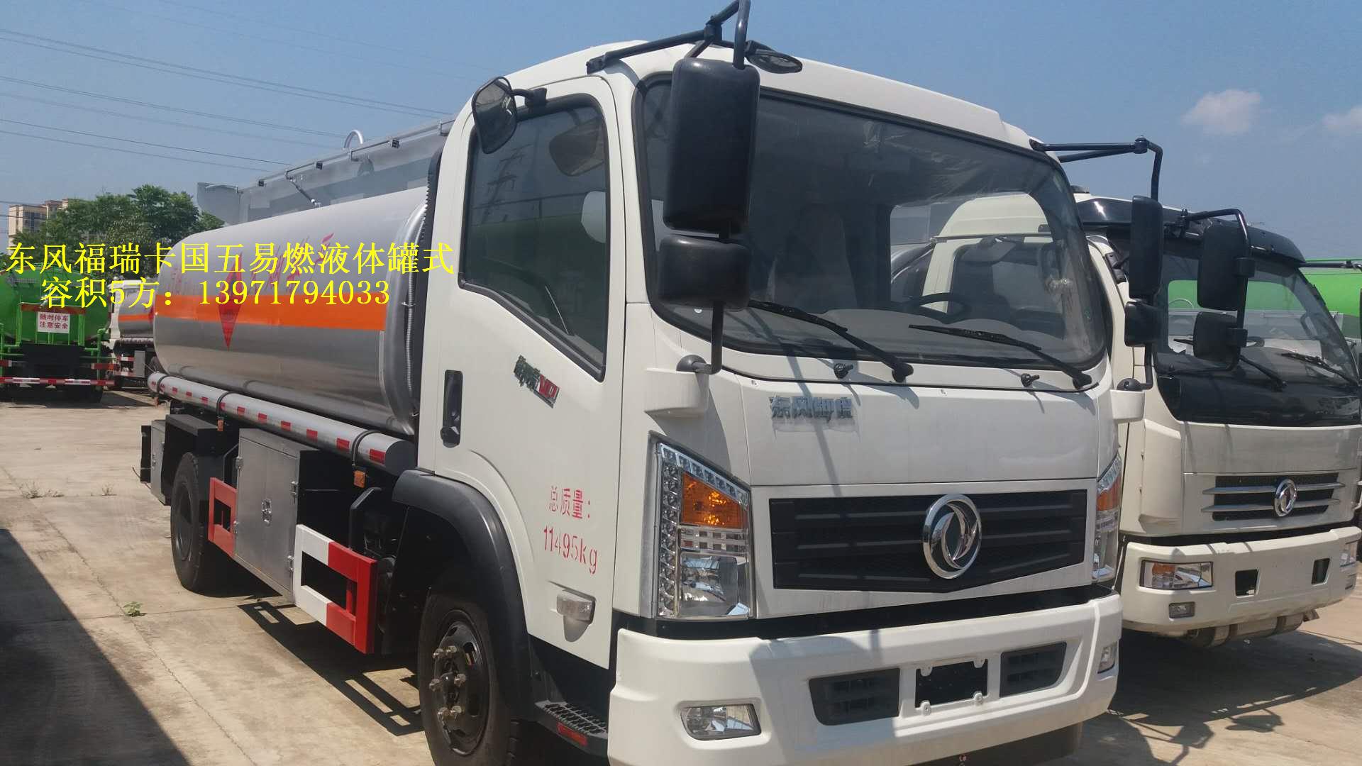 東風福瑞卡國五易燃液體罐式運輸車又稱油罐車,加油車、流動加油車、小型加油車、電腦稅控加油車、油槽車、裝油車、運油車、拉油車、石油運輸車、食用油運輸車、油罐車、液罐車、易燃液體罐式運輸車等。主要用作石油的衍生品(汽油、柴油、原油、潤滑油、煤焦油等油品),乙醇,異丙醇,丙酮,異丁醇,甲醇及壓裂液和洗井液的運輸和儲藏。