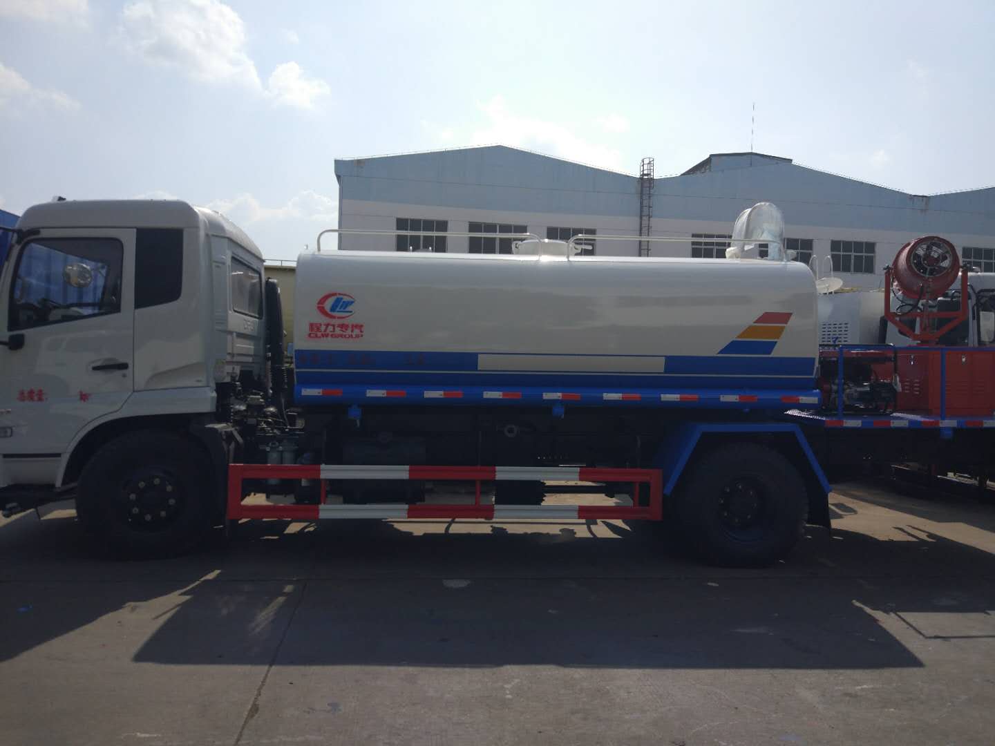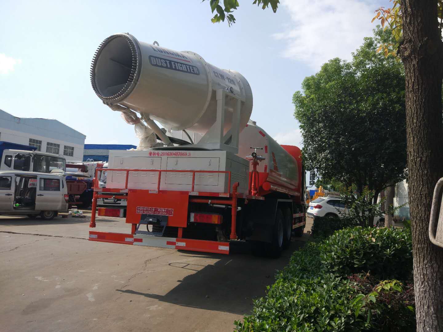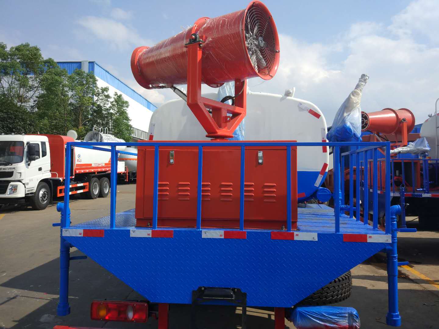 三、、灑水車用于除塵作業:灑水車在灑水時可將空氣中的灰塵和微小顆粒物沉積下來,減少空氣中危害人體的雜質,對人體的健康有利,起到除塵的作用,像一些灰塵較大的工地、水泥廠等灰塵比較大的環境,這時候灑水車尾部平臺上加裝風送式噴霧機組就起到除塵,抑塵的作用。