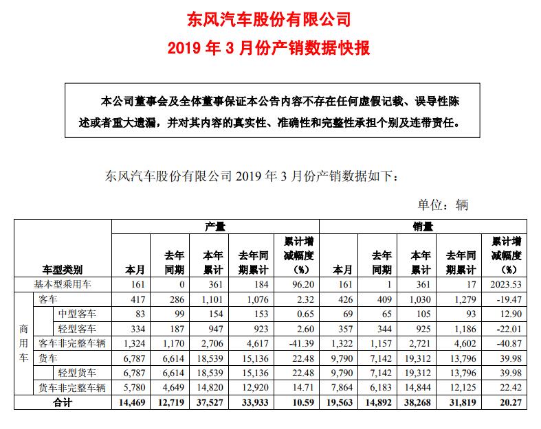 | 東風汽車股份發布2019年3月產銷快報 程力專用汽車股份有限公司銷售二十六分公司 |