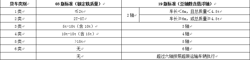 5月30日,交通運輸部發布了修訂后的新版《收費公路車輛通行費車型分類》標準,明確了貨車主要按照總軸數分類,2軸藍牌貨車為一類貨車,2軸黃牌車為二類貨車,三軸為三類,四軸為四類,五軸為五類,六軸為六類,六軸以上根據車輛總軸數按照超限運輸車輛執行。除此之外,將1類和2類客車分類界限值由核定載人數7人修訂為9人,這意味著核載8人和9人的微客由原2類客車降為1類客車,降低了對應車輛的收費標準。同時分類標準在客車和貨車的基礎上增加了專項作用車分類。