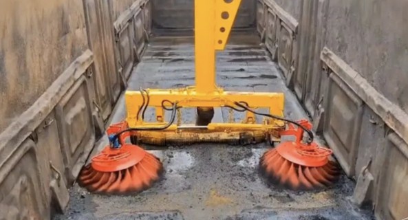 隨著我國“一帶一路”戰(zhàn)略的實施推廣,我國沿海港口的貨運量不斷增加,煤炭和礦石等散裝物料經海運到港后主要通過火車運往內陸各地,因火車貨廂的散裝物料經翻車機或卸料設備卸料后車廂內都會剩余較多的余料,所以,為避免不同貨料混摻,客戶要求空火車車廂在裝料前需要清掃干凈。