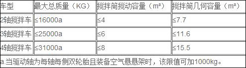 (1)混凝土攪拌運(yùn)輸車應(yīng)符合下表規(guī)定: